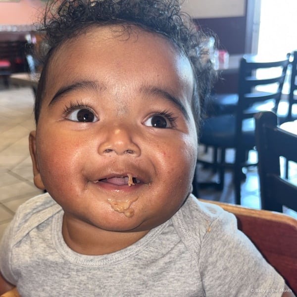 "Hi my name is Azaiah/Aj. I am 8 month old. I am a happy chunky baby. I love trying food. I barely got 2 teeth but I eat everything, my favorite is pizza! I love meeting new people! I love bluey!"