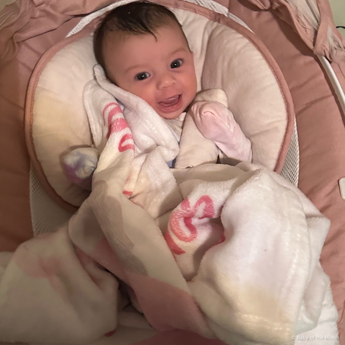 "Say hi to my sweet baby.. she is so loveable and the most cuddly baby. She loves her brothers and dad so much. She got the biggest smile ever and the biggest brightest eyes ever"