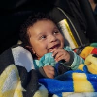 "At 3 months he can roll over, say hi and hey. He is loveable, happy baby, very alert. Smiles with everyone."