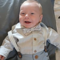 "He's not like any other 2 month old hes full of smiles and loves to tell you all about his day he wakes you up every morning with a story to tell hes a very bright blue eyed boy with a big smile"